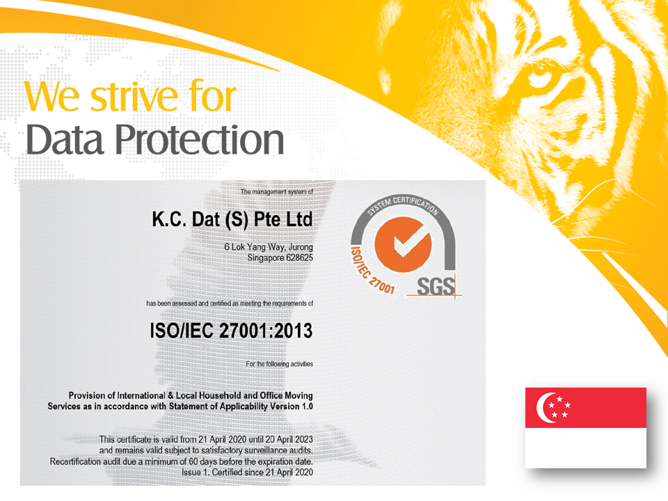 14th May 2020, SINGAPORE – KC DAT (S) Pte Ltd (T/A “Asian Tigers Group”) in Singapore is pleased to announce that we have achieved our ISO/IEC 27001:2013 certification. The certification and audit were performed by SGS, the world’s leading inspection, verification, testing and certification company. As our commitment to our valued Clients, Customers and our Supply Chain Partners, we set out on this journey to keep their information and our data safe by implementing ISO/IEC 27001:2013 certification Information Security Management System (ISMS).