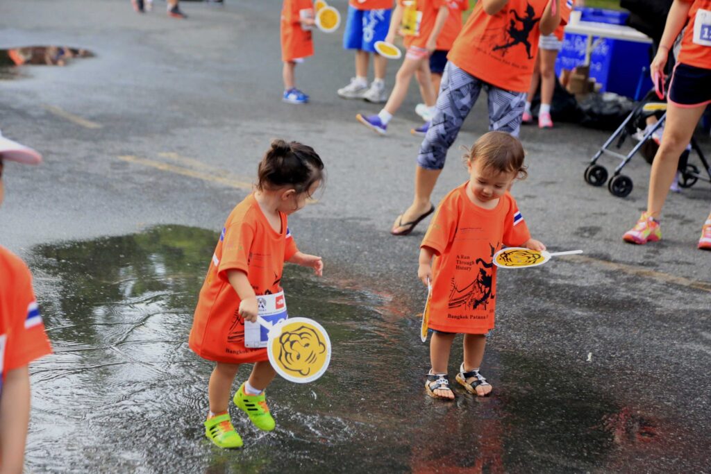 A well-thought-out Fun Run course had been prepared to take participants on journeys through the different periods in Thai history. The run was broken down into epochs and landmarks. As the children jogged along, they got to see replicas of iconic sites: the Grand Palace, Ayutthaya temples, and traditional Thai villages. This was one educational aspect that made this run enriching, combining exercise with a fun history lesson.